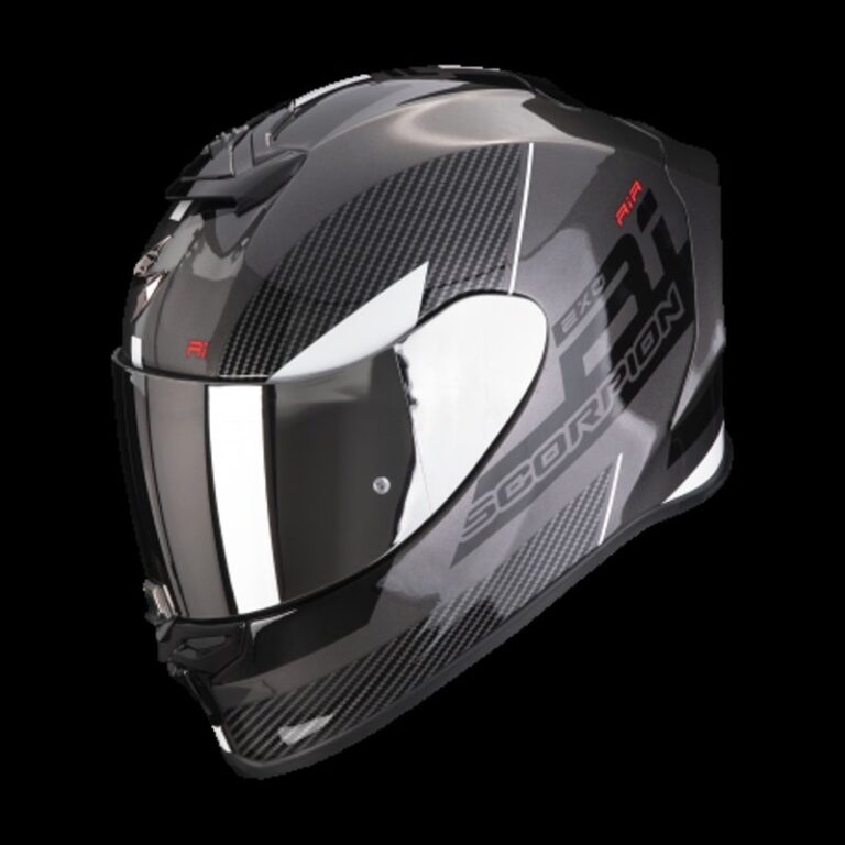 Scorpion Exo-R1 Evo Air Final Casco Integral Moto Plata Oscuro/Negro/Blanco